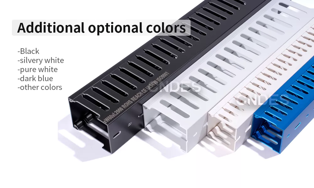 Ofrece una gama completa de tamaños, desde ultracompactos (20 × 15 mm) hasta grandes (100 × 120 mm), y se adaptan a diferentes cantidades y diámetros de cables, como el tamaño de 40 × 60 mm, ideal para cableado de gabinetes de servidores. Disponible en colores estándar como blanco, gris y negro, o personalizado con logotipos corporativos y números de línea para una fácil categorización y una mejor gestión de cables. El conducto de cableado ranurado para gabinetes de PVC incluye una amplia gama de accesorios, incluidos conectores a juego (como clips en forma de U), placas de cubierta y soportes. Admite instalación con fijación por tornillos y con clip, compatible con múltiples métodos de montaje para simplificar los procesos de construcción.