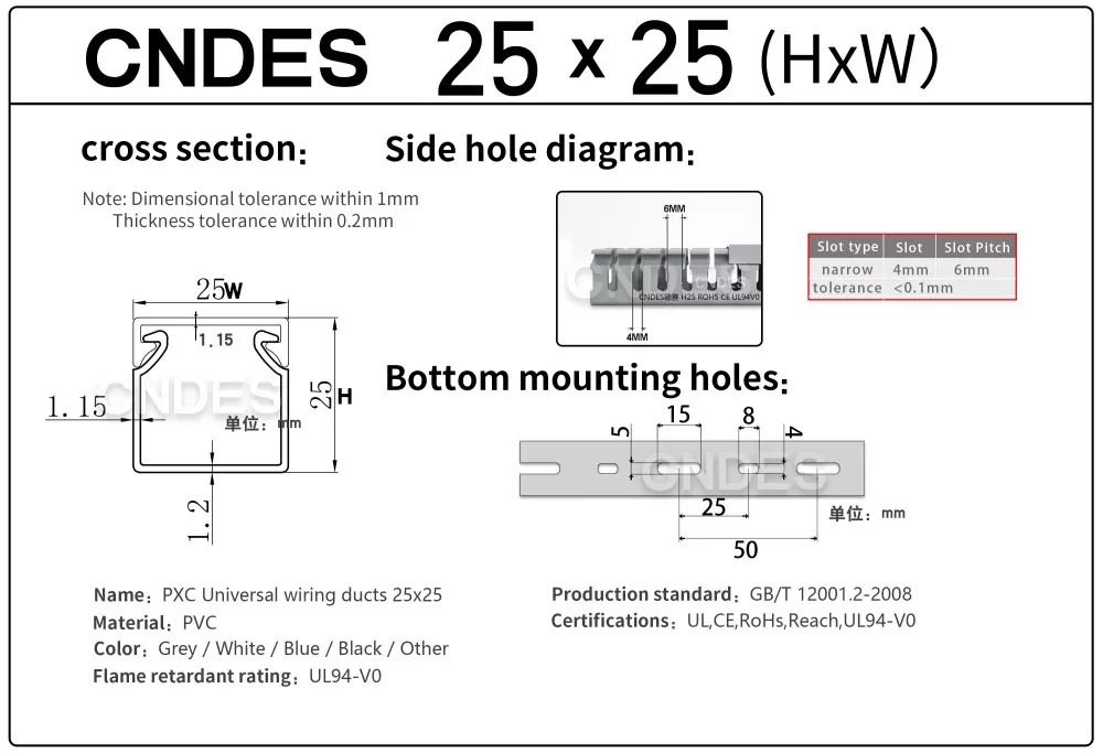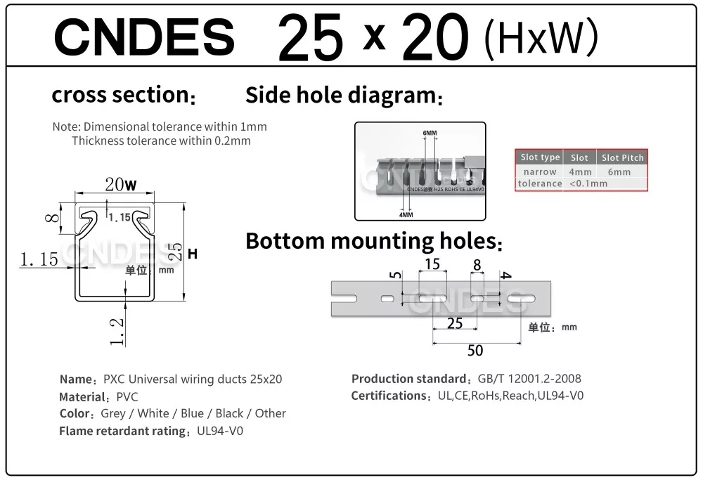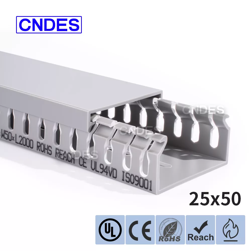 A través de nuestro equipo de estampado de alta precisión desarrollado independientemente, combinado con un exclusivo proceso de corte automático segmentado, CNDES puede producir de manera flexible productos en múltiples especificaciones, incluidos conductos de panel de control ranurados de PVC de alto rendimiento y 25 mm de altura, satisfaciendo las diversas necesidades de los clientes en gabinetes de control y sistemas eléctricos.