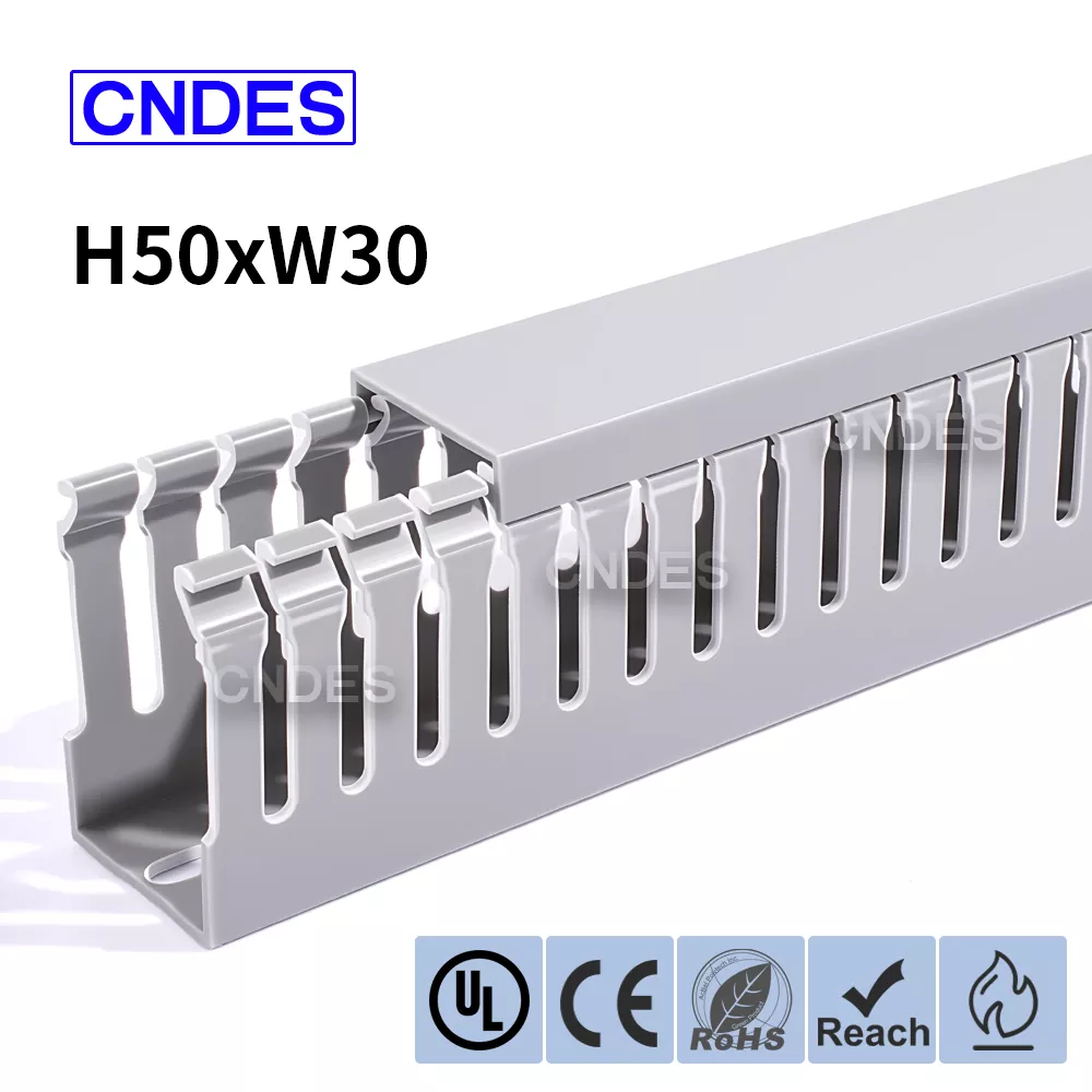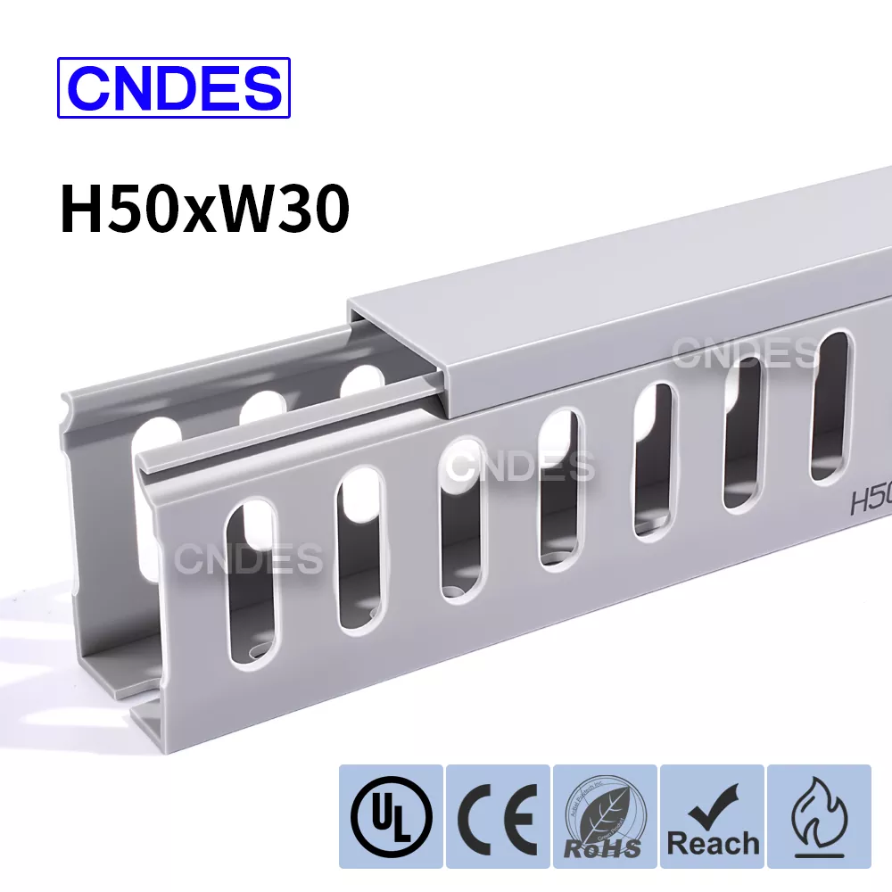 El conducto organizador de cables de PVC ranurado Quality 50×30 de CNDES es una solución compacta y eficiente para gestionar cables en espacios reducidos, como pequeños gabinetes de control, gabinetes de datos y cajas de conexiones de equipos. Este conducto de cableado de perfil delgado permite a los instaladores organizar, separar y proteger cables sin ocupar demasiado espacio en el panel.