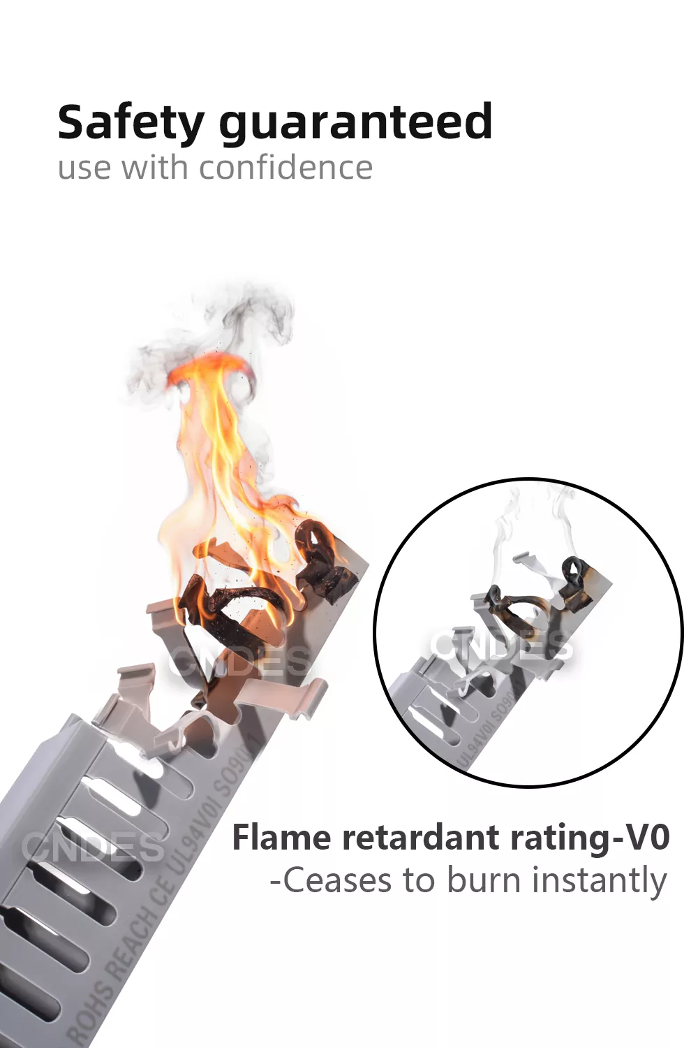 A través de certificaciones autorizadas como UL, CE, ROHS, REACH, UL94-V0, etc.