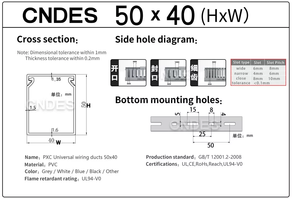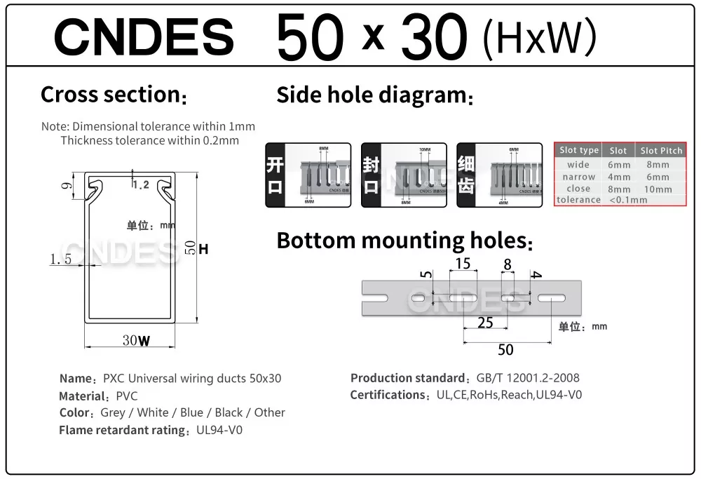 ¿Busca un proveedor confiable de conductos de cableado de panel de PVC ranurado de 50 mm de altura? CNDES ofrece soluciones de gestión de cables asequibles y de alta calidad que cumplen con los estándares internacionales.
