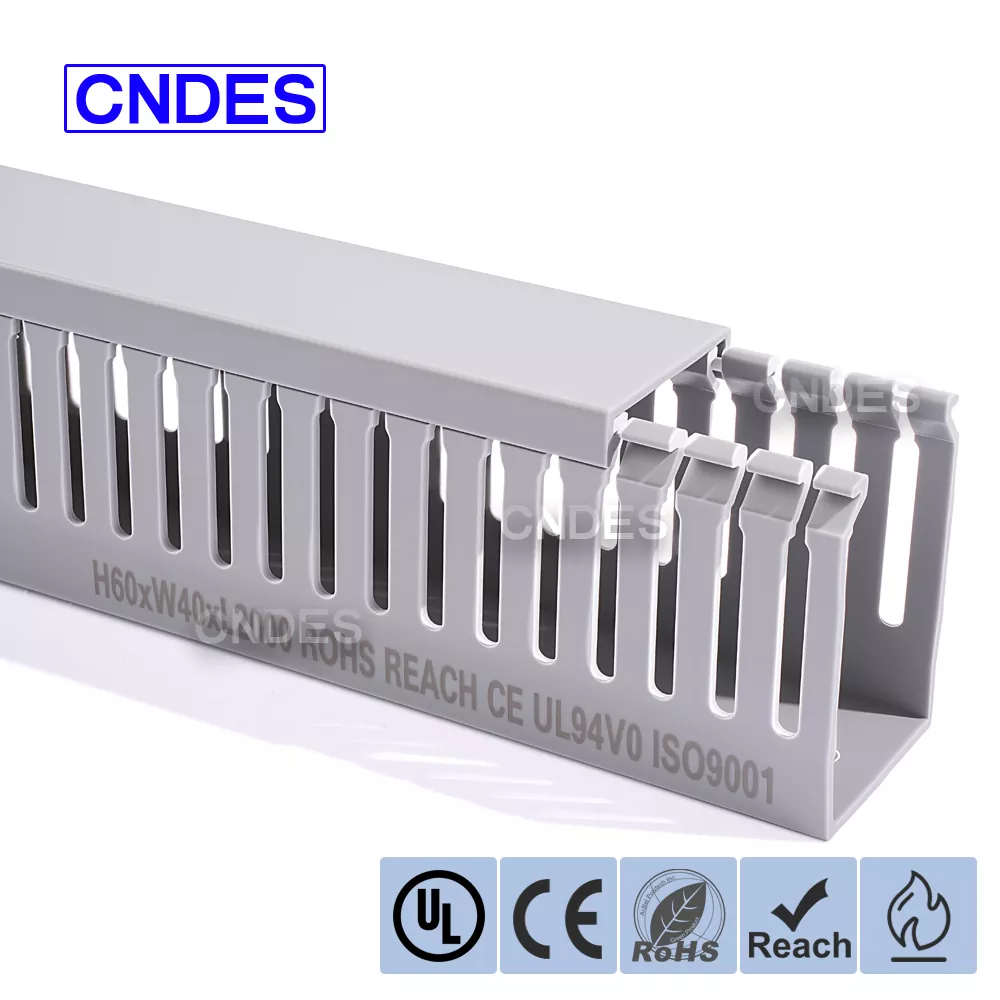 El conducto para cableado de PVC retardante de llama de calidad 60×40 es una solución confiable de gestión de cables diseñada para paneles eléctricos, gabinetes de control y sistemas de automatización industrial donde la seguridad y la organización son fundamentales. Producido por CNDES, un confiable fabricante y proveedor de conductos para cableado de PVC en China, este modelo combina dimensiones compactas con un rendimiento retardante de llama certificado, lo que lo hace ideal para instalaciones eléctricas profesionales.