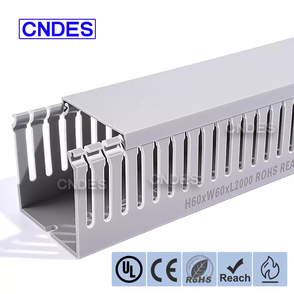El conducto para cables de gabinete de control de PVC de 60 × 60 es una solución de administración de cableado compacta pero de alta capacidad diseñada para gabinetes de control eléctrico, paneles de automatización y gabinetes industriales modernos. Fabricado por CNDES, un fabricante y proveedor profesional de conductos de cableado de PVC en China, este conducto proporciona un enrutamiento de cables limpio, aislamiento confiable y durabilidad a largo plazo para sistemas de control de alto nivel.
