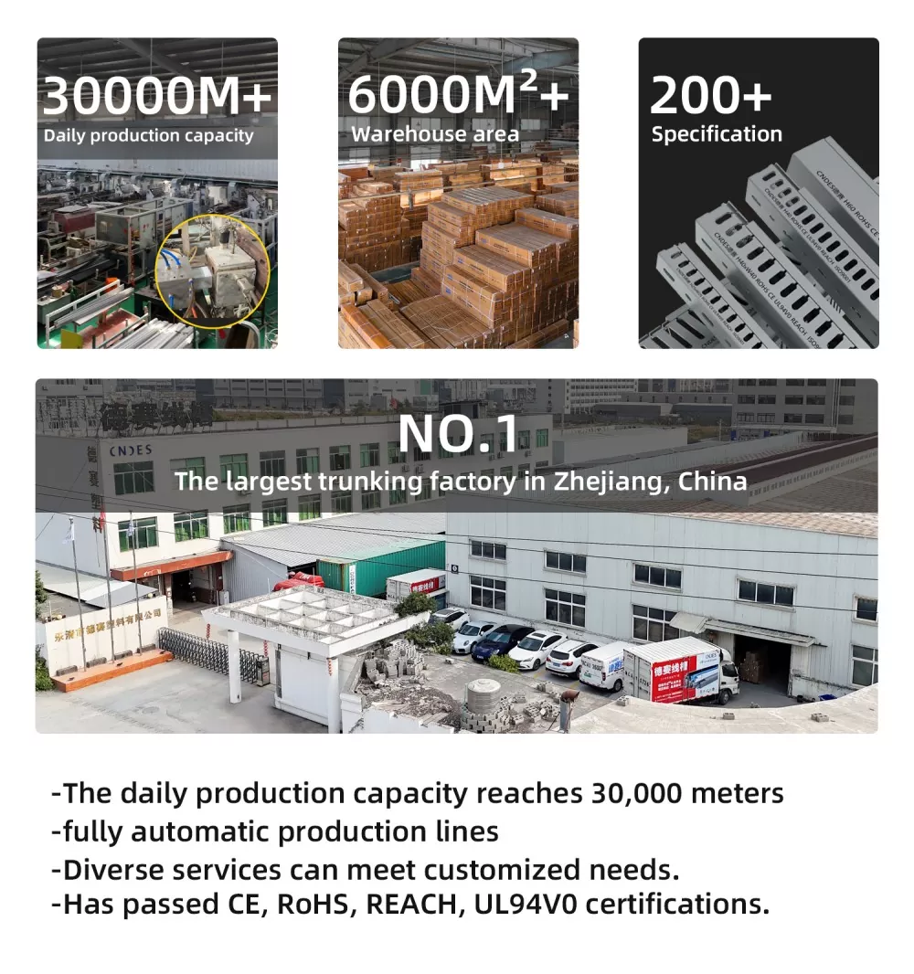 Como fabricante profesional de conductos para cables de PVC, CNDES tiene un suministro estable con 13 líneas de producción, una producción diaria de hasta 30000 metros y un inventario de almacén de 6000 metros cuadrados con más de 200 especificaciones. Nuestro sistema de inspección de calidad controla estrictamente los productos: desde la selección de materias primas y el monitoreo de la producción en tiempo real hasta el muestreo del lote final, asegurando que la tasa de defectos de fábrica de los productos sea inferior al 0,5 % y siempre sea confiable.