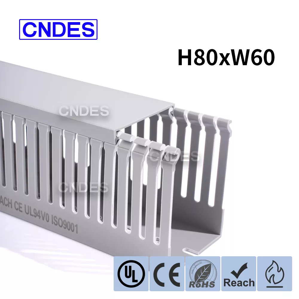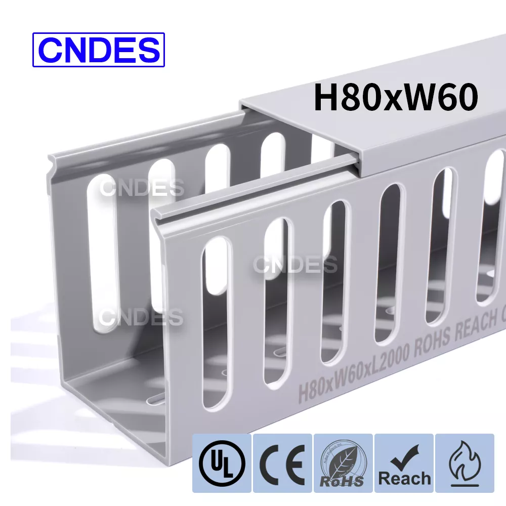 ¡CNDES es uno de los principales fabricantes y proveedores de conductos de cableado de PVC ranurados listados por UL con precios de fábrica competitivos! Este conducto de cableado de PVC ranurado personalizado de 80 × 60 cuenta con ranuras abiertas espaciadas uniformemente en ambos lados para un rápido enrutamiento, roscado y mantenimiento futuro de los cables. Los bordes de las ranuras ensanchados mejoran la rigidez estructural al tiempo que amplían la capacidad del cable. Los bordes redondeados evitan daños en las manos o en el aislamiento de los cables durante la instalación. El conducto de cableado de PVC ranurado con certificación UL incluye cubiertas antideslizantes para garantizar un cierre seguro y evitar la apertura accidental.